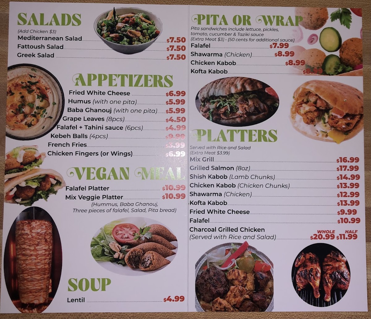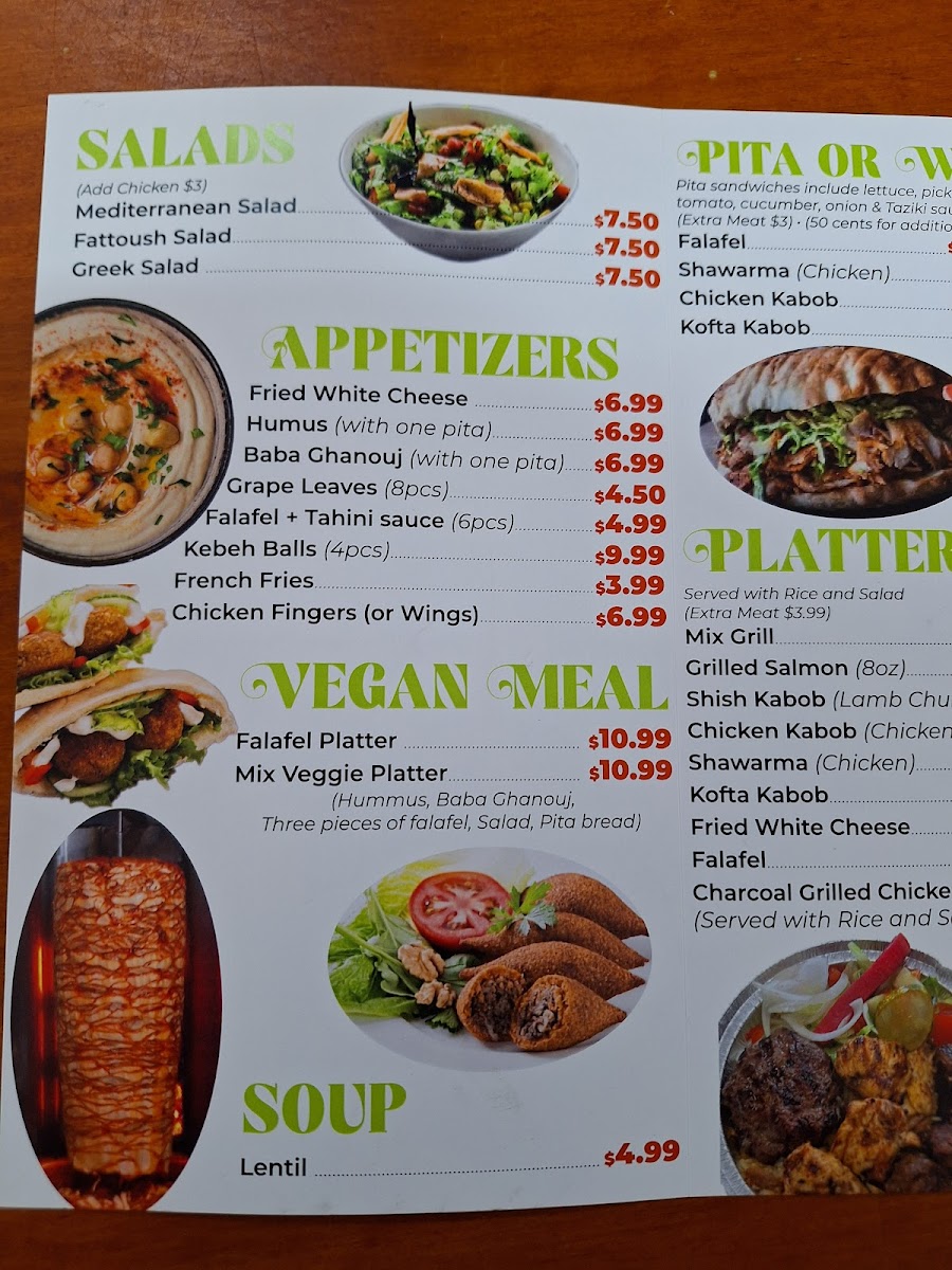You’ll find classic offerings such as falafel sandwiches and shawarma wraps alongside heartier plates like lamb platters and grilled chicken. The appetizers, including hummus with warm pita or crispy fried cheese, set a welcoming tone and work well paired with fresh salads or the signature lentil soup. Light yet filling, these dishes suit a laid-back atmosphere where the focus is on good food without fuss.